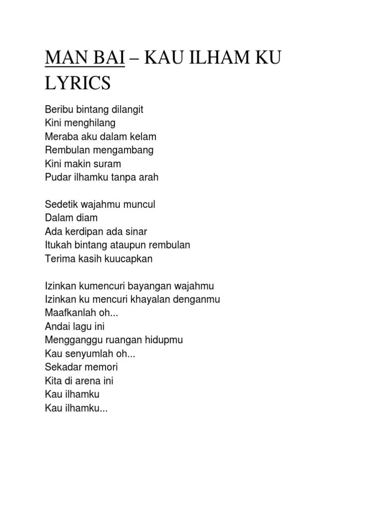 Di antara beribu bintang am em hanya kaulah yang paling terang f c di antara beribu cinta dm g pilihanku hanya kau sayang. chorus c g am em di antara beribu bintang hanya kaulah yang paling terang. F g meraba aku dalam kelam. ٢ جمادى الأولى ١٤٤٣ هـ. ١١ جمادى الآخرة ١٤٤٣ هـ.